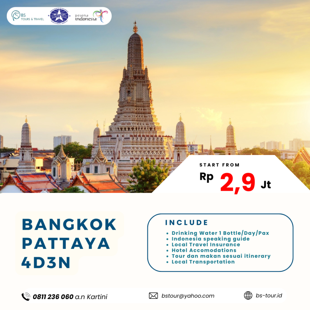 Rasakan liburan penuh warna dalam paket 4D3N Bangkok – Pattaya, destinasi favorit yang menawarkan kombinasi budaya, alam, kuliner, hiburan, hingga spot-spot foto kekinian. Dengan perpaduan...